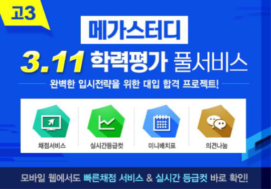 한편, 메가스터디는 고1 및 고2 학생들을 위한 3월 학력평가 풀서비스도 11일 저녁부터 온라인과 모바일을 통해 무료로 제공할 예정이다.