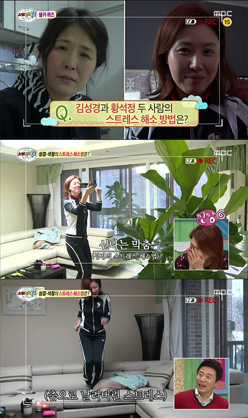 최근 MBC '세바퀴-친구찾기'에 출연한 아나운서 출신 방송인 김성경은 자신의 스트레스 해소법을 공개하면서 발리 천연면피 통가죽쇼파 위에서 신나게 춤을 추는 모습을 보여줘 눈길을 끌었다.