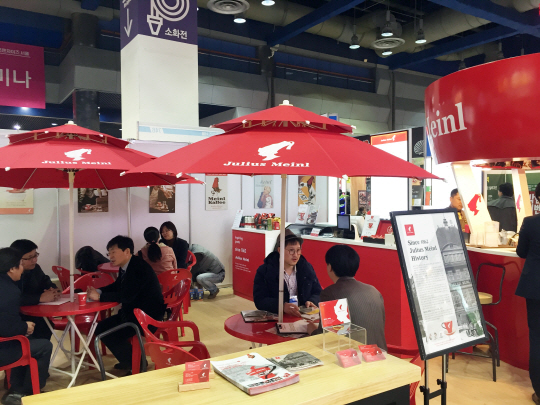 150년 전통의 유럽풍 비엔나 커피브랜드 율리어스 마이늘이 14일까지 코엑스에서 열리는 '2015 프랜차이즈 서울'에 참가했다.