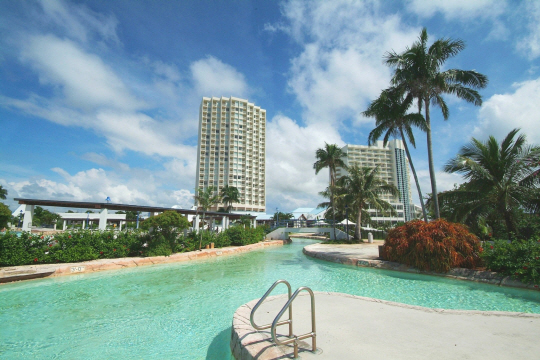 특히 괌 최대의 슬라이더, 실내 풀, 총 길이 360m의 리버 풀, 심신의 피로를 풀어주는 자쿠지, 다목적 라운드 풀까지 다양한 물놀이 시설을 무제한 제공하는 게 특징이다. 마린 클럽에선 제트 스키, 돌핀 크루즈, 바나나 보트, 글래스 보드, 스노클링 등 다양한 해양 스포츠를 즐길 수 있다.