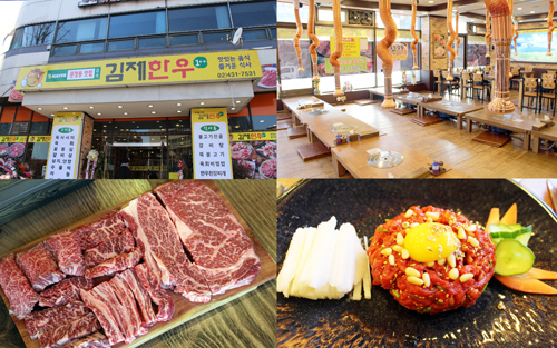 김제한우의 육회는 일반적인 맛과 매콤한 전라도 맛 중에 선택 가능하다. 얼리지 않고 육질이 바로 씹혀 입안에서 녹는 부드럽고 고소한 맛이 일품이다. 한우된장찌개는 암소한우 파지를 된장찌개에 듬뿍 넣어 일반 차돌 된장찌개보다 소고기 풍미가 풍부하다.