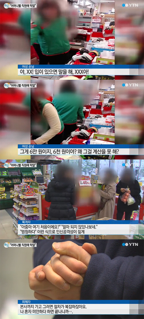 하지만 피해 직원은 "본사까지 가고 그러면 절차가 복잡해진다. 나 혼자 미안하다 하면 끝난다"며 딸뻘인 손님에게 한참 욕설을 듣고도 점장과 함께 고개 숙여 사과한 것으로 전해졌다.