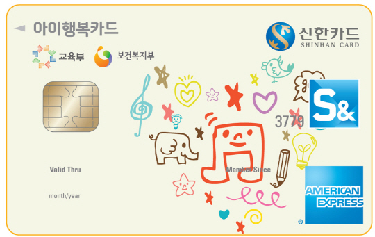 신한카드의 아이행복카드는 신용 및 체크카드 두 종류로 발급된다. 주요 서비스로는 치과 및 한의원을 포함한 병원, 약국에서 5% 결제일 할인을 받을 수 있고, 이마트, 홈플러스, 롯데마트에서도 5% 결제일 할인을 받을 수 있다. 또한 G마켓, 옥션, 11번가를 비롯한 온라인 쇼핑몰, 이동통신 및 도시가스 대금 결제시에도 다양한 할인혜택을 누릴 수 있다. 이들 주요 할인서비스의 경우, 전월 이용금액에 따라 월 최대 4만원까지 할인 혜택을 제공한다.