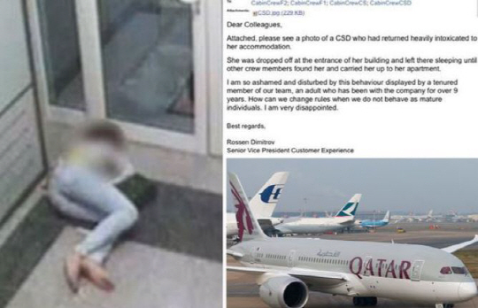 최근 카타르항공의 한 여성 승무원이 만취해 쓰러져 있는 사진이 공개돼 화제다.