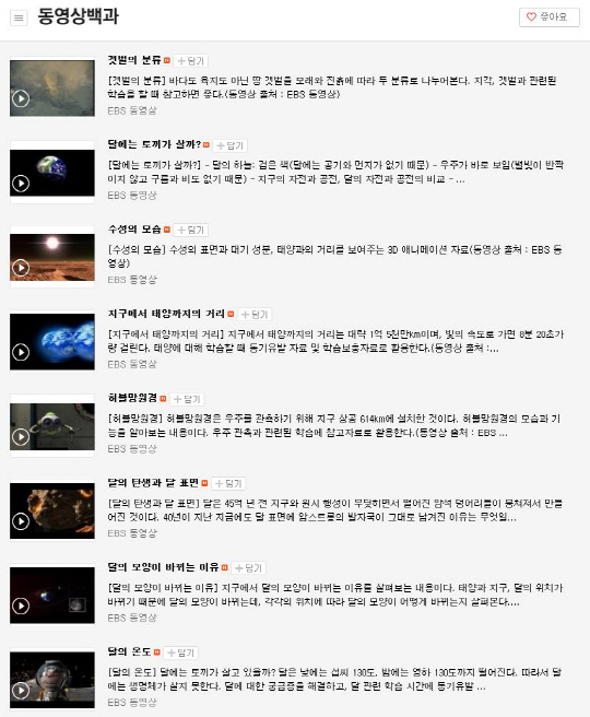 동영상 백과는 기존에 네이버 지식백과가 보유한 9천여 개의 영상과 지난해 12월 제휴를 맺은 EBS의 1만 2천여 개의 콘텐츠로 구성됐다. EBS의 교육 동영상은 수학, 과학, 사회, 예체능, 의학 정보 등 다양한 분야를 담고 있다.
