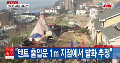 한편, 경찰은 텐트 내 바닥에 깐 난방용 전기장판에서 불이 시작된 것으로 보고 국립과학수사연구원에 감식을 의뢰해 정확한 화재 원인을 조사하고 있다. <스포츠조선닷컴>