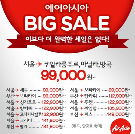 한편 에어 아시아 빅 세일 모든 특가 요금 항공권은 23일 새벽 1시부터 에어아시아 웹사이트에서 선착순으로 예약할 수 있다. <스포츠조선닷컴>