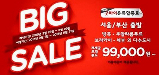 인천 출발 직항인 쿠알라룸푸르, 방콕, 세부, 칼리보, 마닐라 노선은 물론, 부산 출발 직항인 쿠알라룸푸르, 칼리보 노선 모두 9만90000원부터 예약 가능하다.