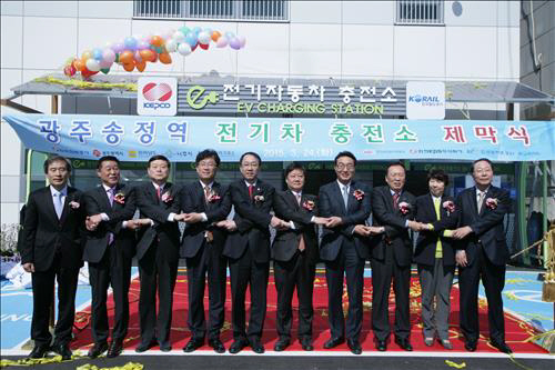 한국전력(사장 조환익)은 24일 광주송정역에서 광주광역시, 전라남도, 나주시 등 9개 기관이 참석한 가운데 전기차 충전인프라 공동이용 협약 체결식을 개최했다.