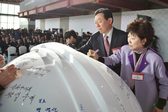 롯데그룹은 롯데월드타워 100층 돌파를 기념해 24일 신동빈 롯데그룹 회장, 이인원 롯데그룹 부회장 등을 비롯한 임직원들과 지역구 국회의원, 송파구청장 등 내외빈을 모시고 기념식을 개최했다. 또한 이날 100층을 완공하는 콘크리트 타설식과 123층 공사가 마무리 될 때까지 안전을 최우선으로 하겠다는 의지를 담은 '안전 기원식'도 함께 진행했다.