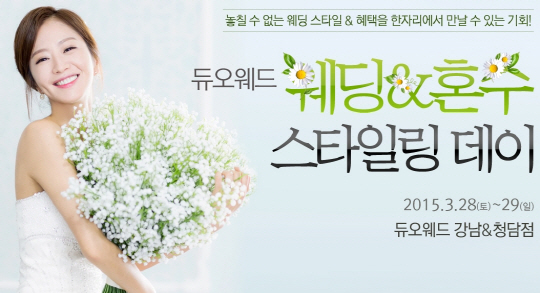 한국 대표 웨딩컨설팅 듀오웨드(대표 박수경, www.duowed.com)는 결혼 성수기를 앞두고 오는 3월 28일과 29일 양일간 듀오웨드 강남, 청담 본사에서 '웨딩·혼수 스타일링데이'를 개최한다.