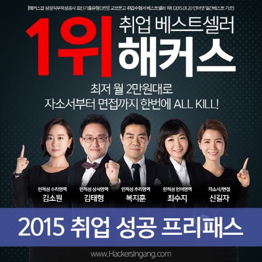 해커스인강이 '2015 취업성공 프리패스'와 '온라인 인적성 모의고사'로 취업준비생 지원에 나섰다.