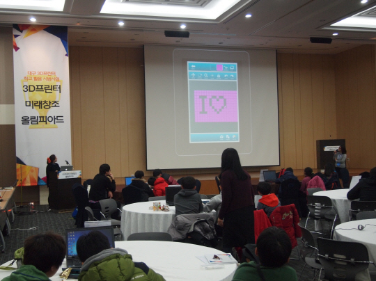 먼저 '대구 미래창조 3D 프린터 올림피아드'는 3D 프린팅 기술에 대해 전혀 접해 보지 못한 25개의 초·중 학생들이 1박2일간 3D 프린팅의 총체적인 것들에 관해 능동적으로 체험하고, 창조하는 행사였다. 오전에 3D 프린팅의 이슈와 원리, 프로세스를 직접 배워보고, STL의 소프트웨어를 활용, 지도교사의 도움 없이 직접 생각한 아이디어를 현실화 해 만들어 출력하고 발표하는 행사로 진행됐다.