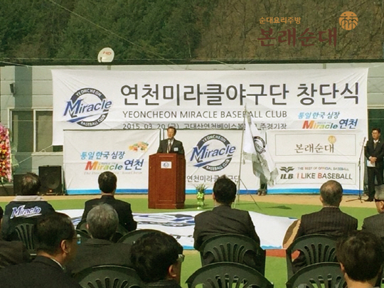본래순대는 지난 20일 '연천 미라클' 창단식에 후원사 자격으로 참석했다. 연천 베이스 볼 파크에서 진행된 이번 창단식에는 '본래순대'를 운영하고 있는 도드람FC의 김운경 대표와 이태형 총괄부장 등이 자리해 창단식을 축하했다.
