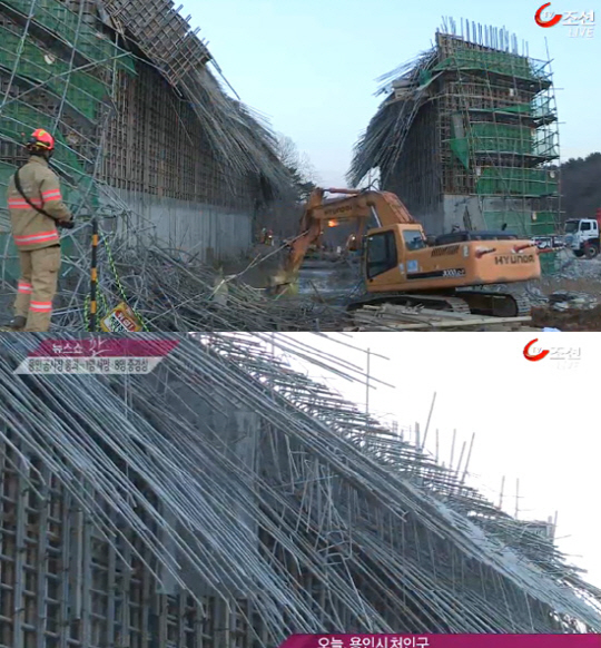 경기도 용인시 한 도로공사 현장에서 건설 중이던 교량상판이 붕괴돼 1명이 숨지고 8명이 부상했다.