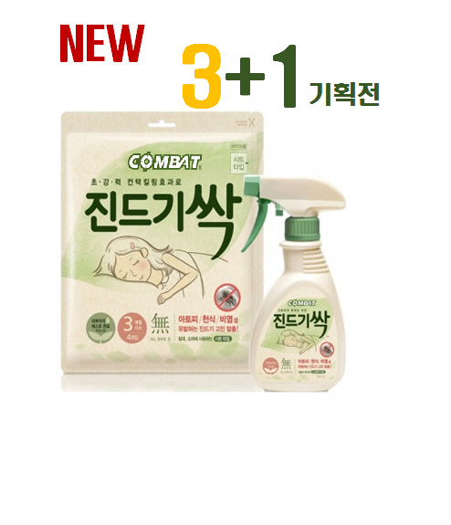 컴배트 진드기싹은 무향·무색·무방부제의 피부자극 테스트를 완료한 식약처 허가 의약외품이다. 스프레이형은 침구류는 물론 의류와 인형, 장난감 등 진드기가 걱정되는 곳 어디든 가볍게 뿌려서 사용할 수 있다. 시트형 제품은 침대나 카펫, 소파 밑에 깔아두면 진드기가 닿자마자 죽는 초강력 컨택킬링 효과를 볼 수 있다.