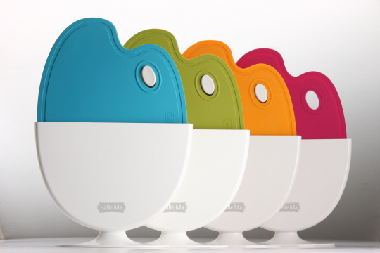 도마의 혁명을 불러 일으킨 '샐마 푸드팔레트' 는, TPU라는 열가소성폴리우레탄 소재를 본격적으로 주방용품 분야에 적용해 탄생한 놀랄만한 발명품이다. 150도의 내열성을 지닌 TPU로 제작된 샐마 도마는 끓는 물에 살균이 가능하고, 식재료별로 도마를 구분해 사용하도록 감각적인 4색의 도마세트로 구성, 재료간 교차 오염을 막을 수 있다. 곰팡이와 습기, 각종 균에서 식재료와 도마 모두를 안전히 보호 할 수 있는 것. 화이트 컬러의 고급스런 전용 정리대는 통풍을 위해 도마사이의 간격을 유지해 주고 도마걸이도 된다. 물빠짐의 통로와 미끄럼 방지 받침까지 스마트한 구조로 설계된 완벽한 주방의 과학으로 다기능, 디자인, 위생성 등 모든 면에서 '가장 진화한 도마'라는 평을 듣는다. 식재료의 종류에 따라 도마를 구분, 사용하게 해 식품의 위생·요리 효율성 더 높아져 샐마가 주방을 풍요롭게 해 주부와 요리를 아티스트와 아트로 승화시킨다는 평을 듣기도 한다.