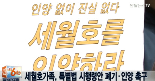 이들은 또 "세월호 인양 계획을 당장 발표하라"면서 "정부는 선체 인양 검토를 이미 마쳤지만 인양 결정을 차일피일 미루고 있다"고 지적했다.