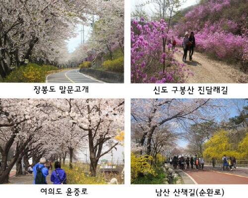 여의도 윤중로는 30년 이상 된 왕벚나무가 1.7km의 도로를 따라 심어져 있는 서울의 대표적 벚꽃길로 매년 4월초부터 중순까지 봄꽃축제가 열린다.