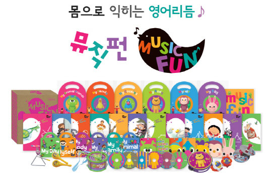 뮤직펀은 반복되는 운율과 리듬, 단순하고 간결한 멜로디에 스토리와 챈트를 곁들여 자연스럽게 영어 리듬감을 몸에 익히도록 돕는 게 특징이다. 송북과 챈트북, DVD를 통해 재미있는 노래와 율동을 직접 따라 하며 영어를 즐겁게 익힐 수 있고 악기 연주도 함께 배우게 된다. 드럼, 마라카스, 캐스터네츠, 탬버린, 심벌즈, 트라이앵글 등 총 6가지의 리듬악기가 영어의 액센트와 박자를 익히는 학습 도구로 활용되어 영어는 물론 음악적 감수성도 키울 수 있다.