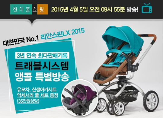 3년 연속 홈쇼핑 방송 최다 판매를 기록한 프리미엄 국산 유모차 브랜드 '리안(RYAN)'이 5일 오전 9시 55분부터 75분간 현대홈쇼핑 앵콜 방송을 진행한다.