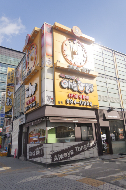39년째 운영중인 오늘통닭이다. 오늘통닭은 1977년 7월 1일 수유에서 7평짜리 매장으로 문을 연 삼성통닭이 전신이다. 수유리의 한 건물 귀퉁이에 겨우 존재하던 통닭집은 이제 건물 한 채를 전부 쓸만큼 커졌다. 오늘통닭 수유 본점은 지금도 창업당시 그 자리를 지키며 명성을 떨치고 있다.