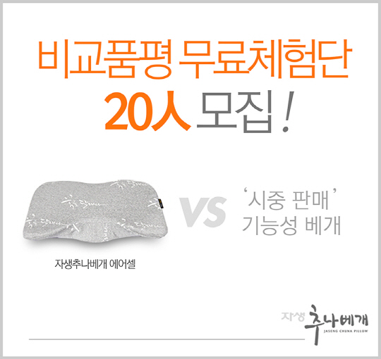 자생추자베개 체험단에게는 '자생추나베개 에어셀'과 타사 기능성 베개를 각 1개씩, 약 50만원 상당의 비교체험키트를 무료로 제공된다. 객관적인 평가를 위해 양사 제품에 대한 어떠한 사전 정보도 제공하지 않고 체험을 진행한다.