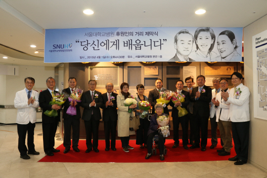 서울대학교병원(병원장 오병희)은 발전후원회 창립 10주년을 기념해 4월 1일 병원에 기부한 후원인들의 스토리를 담은 '후원인의 거리' 제막식을 개최했다.