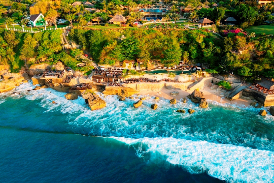 특히 파도를 직접 느끼며 발리 최고의 일몰을 즐길 수 있는 곳으로, 바다의 리듬과 바 위쪽에 위치한 DJ부스에서 나오는 펑키음악의 조화를 통해 화려한 분위기가 장점으로 꼽힌다.