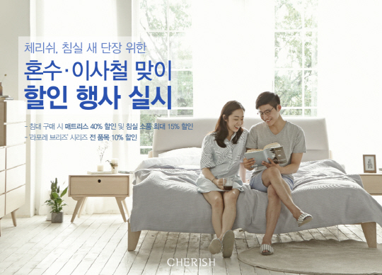 토탈 리빙 디자인 기업 ㈜체리쉬(대표이사 유경호, www.cgagu.com)가 혼수철과 이사철인 4월을 맞아 새롭게 침실을 꾸미고 싶은 고객을 위한 다양한 할인 행사를 30일까지 진행한다.