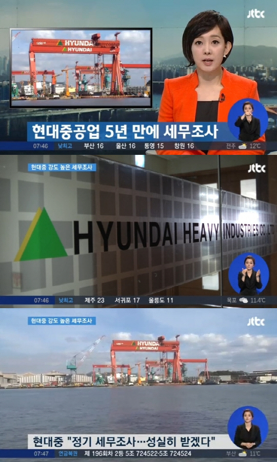 2일 JTBC의 보도에 따르면 국세청은 지난 1일 오전 현대중공업 울산 본사에 조사관들을 보내 세무조사를 벌이고 자금 관련 자료들을 확보했다.