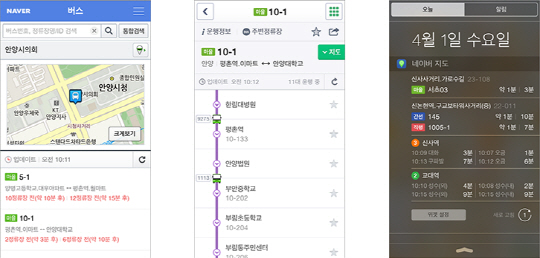 네이버는 지도앱의 iOS 버전을 통해 위젯 기능을 제공, 이를 통해 아이폰 이용자들이 출퇴근 및 등하교 시 자주 이용하는 버스 운행 정보를 간편하게 확인할 수 있도록 지원한다.