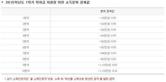한국장학재단은 2일 2015학년도 국가장학금 소득분위 산출 결과를 발표했다.