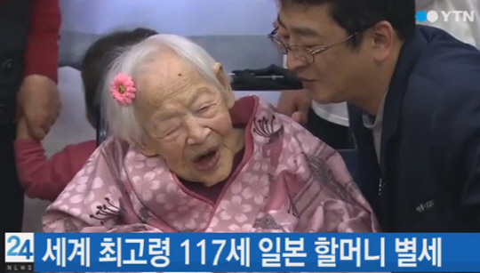 남녀를 통틀어 세계 최고령으로 기네스북에 등재된 일본인 오카와 미사요 할머니가 117세를 일기로 별세했다.