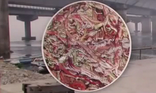 한강 하류서 또 다시 끈벌레가 대량으로 발견됐다.