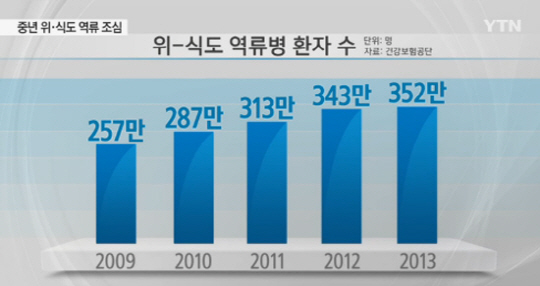 가슴과 명치 부분이 타는 듯 쓰리고 소화가 안 되며 신물이 목까지 넘어오는 증상인 위식도 역류병이 40~50대에 특히 많이 발병하는 것으로 나타났다.