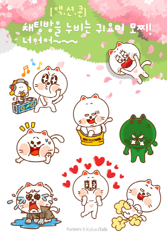 다음카카오에 따르면 첫 액션콘인 모찌 캐릭터는 봄기운, 사랑, 민망함, 신남, 반가움, 슬픔, 화남, 엽기 등 총 8가지의 감정 및 상태를 표현할 수 있다.