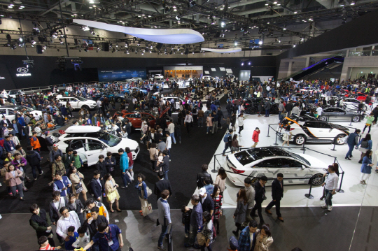 서울모터쇼조직위원회(위원장 김용근)는 4일 토요일 9만 2000명, 5일 일요일에는 11만명이 전시장을 찾았다고 밝혔다. 3일 개막 이후 누적 관람객수는 23만 4000명이다.