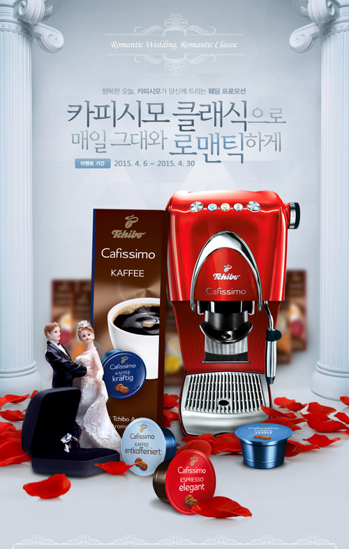 이번 '로맨틱 웨딩 이벤트'는 캡슐커피 50곽을 구매하는 고객에게 스팀노즐이 내장 돼 집에서도 손쉽게 우유거품을 만들 수 있는 캡슐커피 머신 클래식을 증정하는 '커피 매니아 신혼부부를 위한 초이스'와 캡슐커피 머신 클래식 구매 시 스팀피쳐, 머그잔, 캡슐커피 5곽 등의 사은품을 증정하는 '프리미엄 알뜰 초이스', 캡슐커피 구매 고객에게 캡슐커피를 하나 더 드리는 '플러스원 초이스' 등의 다양한 이벤트가 진행된다.