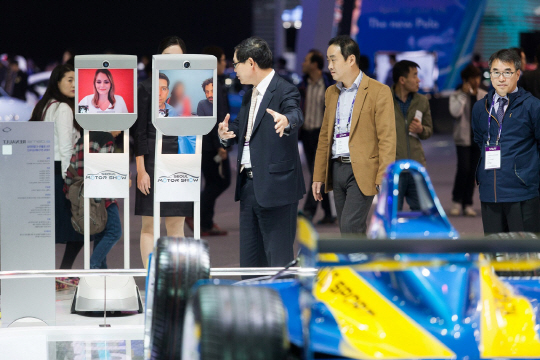 세르게이 브린과 스캇 헤이슨은 미국 샌프란시스코에서 원격으로 서울모터쇼조직위원회가 전시기간 방문객들의 편의 서비스를 위해 준비한 모바일 커뮤니케이션 기기 빔(Beam)에 접속해 전시장을 방문했다.