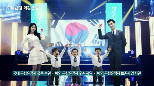 하나은행과 외환은행은 광복 70주년을 기념하며 나라사랑의 참뜻을 전 국민과 나누고자 '대한민국만세'의 메시지와 함께 '광복 70주년의 행복'을 전하는 공동 TV 광고 캠페인을 선보였다.