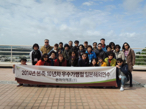 이번 일본 오키나와 해외연수는 본사와 가맹점주간 상생을 위한 프로그램의 일환으로, 지난 3월 3박 4일의 일정으로 본죽 매장을 10년 이상 운영한 우수 가맹점주 17명과 본사 직원이 함께 참여했다. 해외연수 기회가 제공된 우수 가맹점은 주기적으로 진행하는 가맹점 기초평가 및 위생서비스, 필수준수사항 등 총 7개 항목에서 상위 점수를 받은 매장을 중심으로 선정됐다.