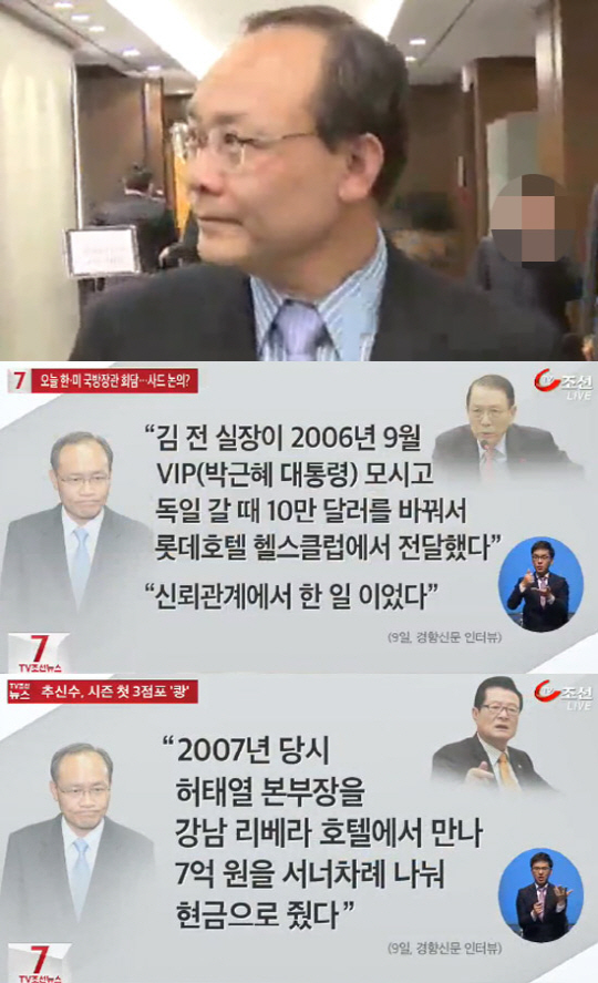 매체에 따르면 성 전 회장은 지난 2006년 9월 박근혜 대통령이 (국회의원 시절) 독일을 방문할 때 김 전 실장에게 10만 달러를 롯데호텔 헬스클럽에서 전달했으며, 허태열 전 대통령 비서실장에게는 2007년 한나라당 대선후보 경선 당시 7억원을 건넸다고 주장했다.