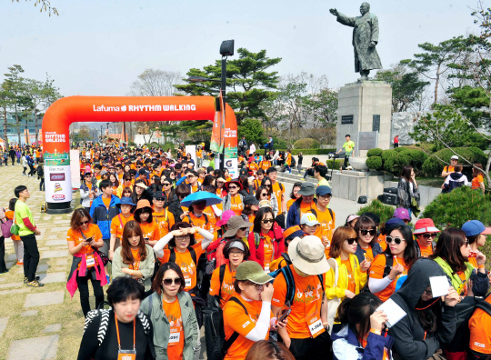 LF(대표 구본걸, http://www.lfcorp.com)가 전개하는 라푸마(Lafuma)의 '리듬워킹' 포토행사가 12일 중구 회현동에 위치한 남산 백범광장에서 진행됐다.