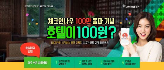 자유여행 트렌드를 선도하는 인터파크투어(tour.interpark.com)의 국내 숙박 앱 '체크인나우'의 누적 다운로드 수가 지난 14일 100만건을 돌파했다.