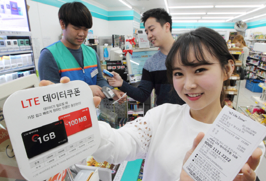 KT(회장 황창규)가 15일 LTE 데이터를 추가 충전해서 이용할 수 있는 'olleh LTE 데이터쿠폰'을 전국 2만여 편의점에서 판매한다고 밝혔다.