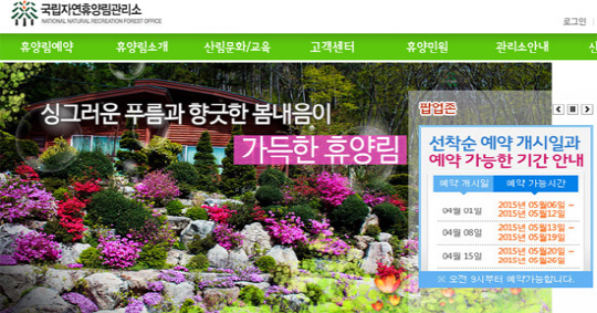 선착순 예약 개시일과 예약 가능 시간은 국립자연휴양림 홈페이지(http://www.huyang.go.kr/)에서 자세히 확인 가능하다. <스포츠조선닷컴>