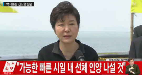 | 박근혜 대통령 팽목항 방문 "빠른 시일 내 선체 인양"…유가족과 만남 불발 |