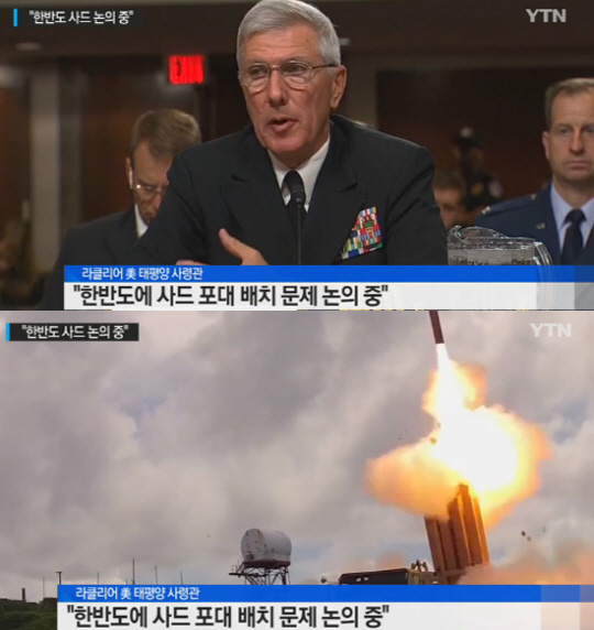 16일(현지시간) 라클리어 사령관은 미국 상원 군사위원회 청문회에 증인으로 출석해 "우리는 괌이 아닌 한반도에 사드 포대를 잠정적으로 추가 배치하는 문제를 논의하고 있다"고 밝혔다.