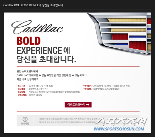 한편, 지엠코리아는 17일부터 30일까지 캐딜락 마이크로사이트(www.allnewcts.co.kr)를 통해 이번 드라이빙 파티에 참가할 수 있는 초대권을 증정하는 이벤트를 실시한다. 캐딜락 차종을 보유하고 있지 않더라도 운전면허를 소지한 고객은 누구나 응모 가능하며 당첨자는 5월 7일에 개별 통보될 예정이다. <경제산업1팀>